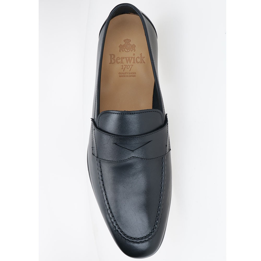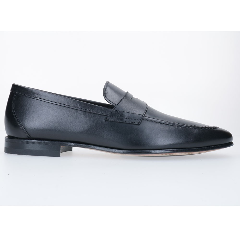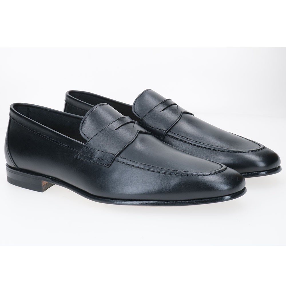Mocassin à bride (penny loafer) en cuir de veau souple, sans doublure pour plus de fraîcheur, et semelle cousue Blake associée à une semelle extérieure en caoutchouc pour une meilleure adhérence au sol.