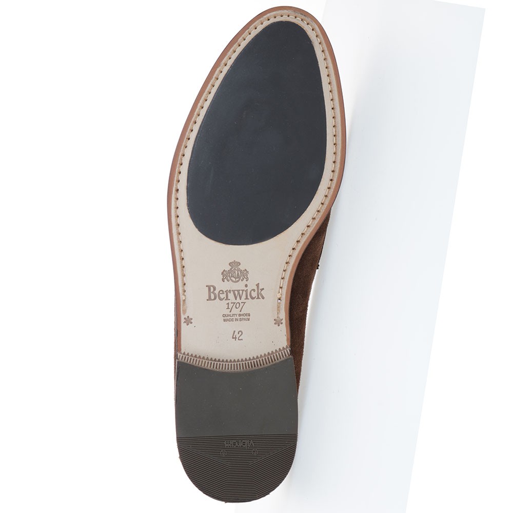 Mocassins à bout arrondi en daim, avec semelle injectée mixte (caoutchouc). Sans doublure.