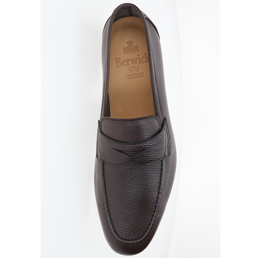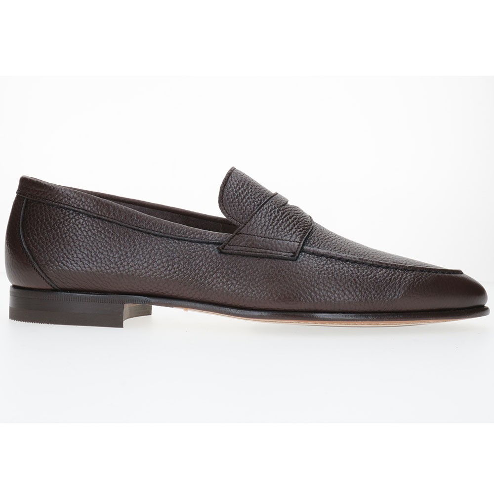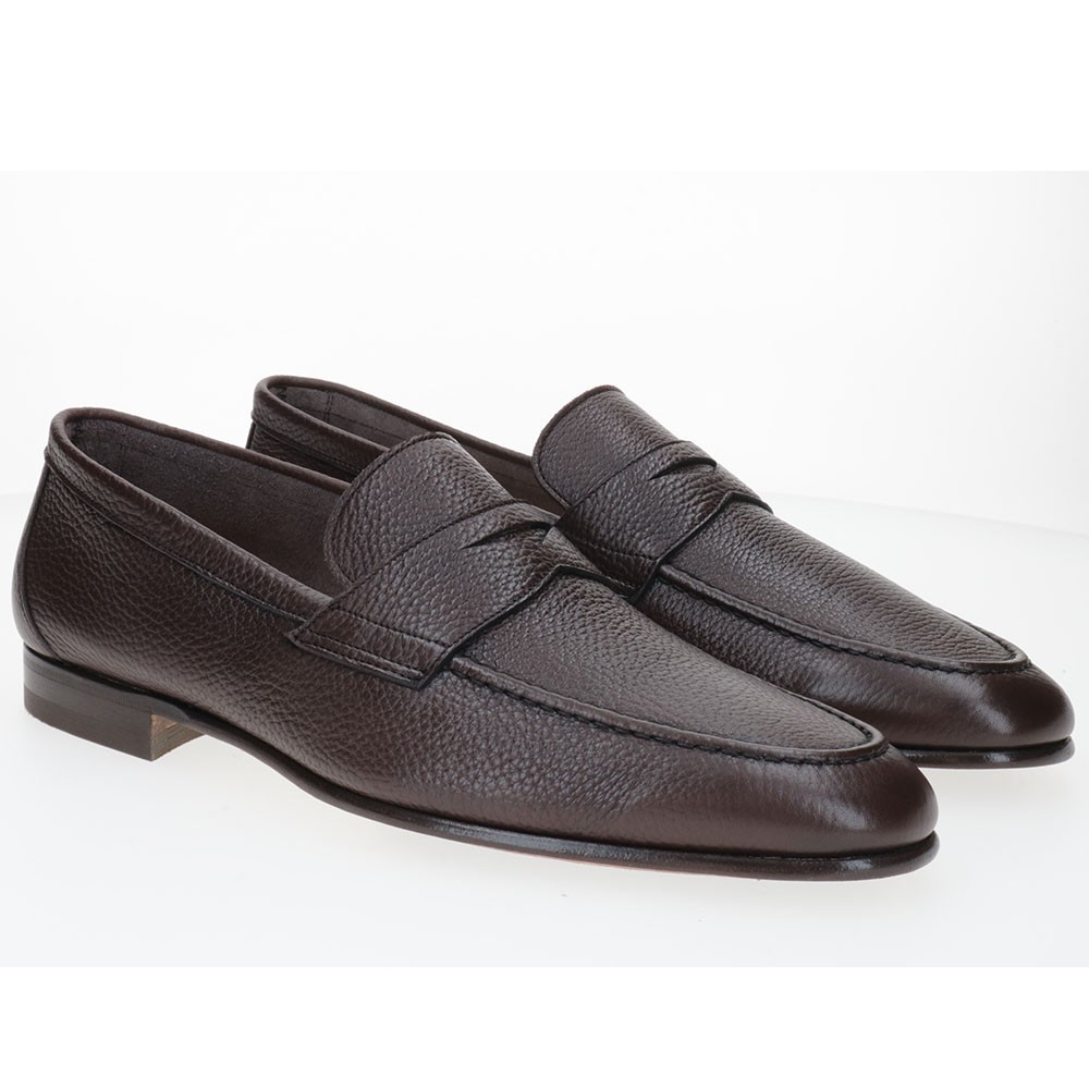 Penny loafers crafted from embossed calfskin, unlined for added breathability, and featuring a Blake-stitched upper with a rubber sole for superior grip.