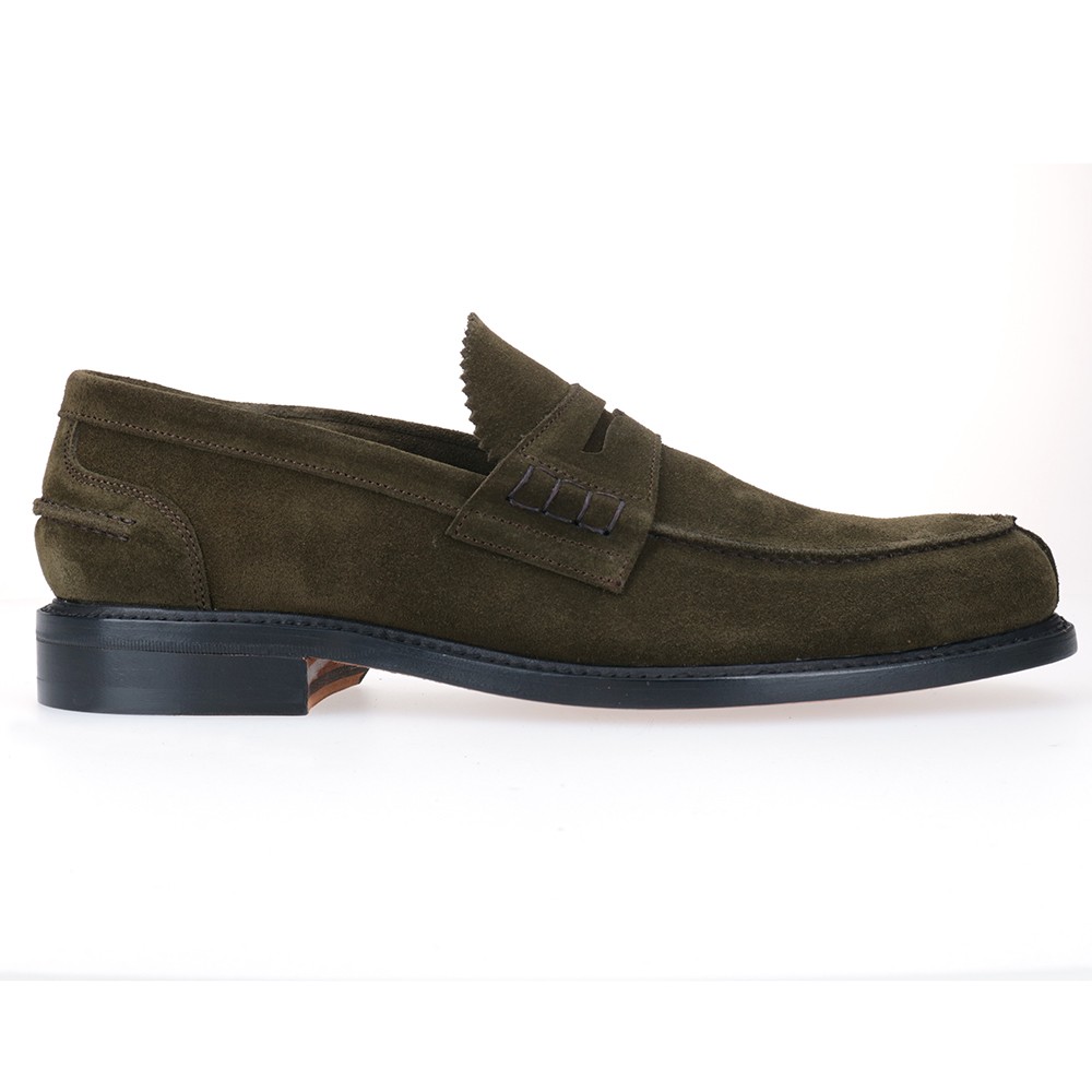 Mocassino in pelle scamosciata e suola in cuoio.