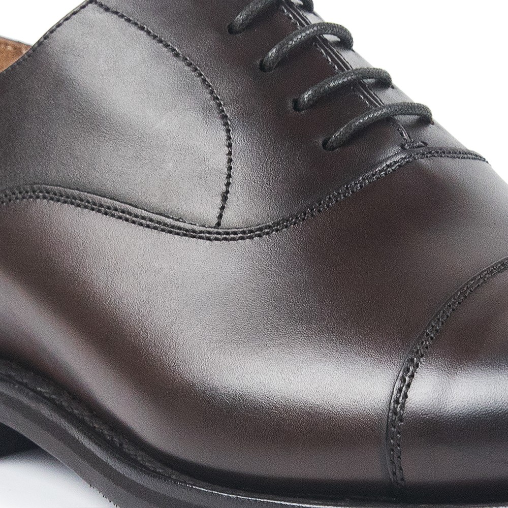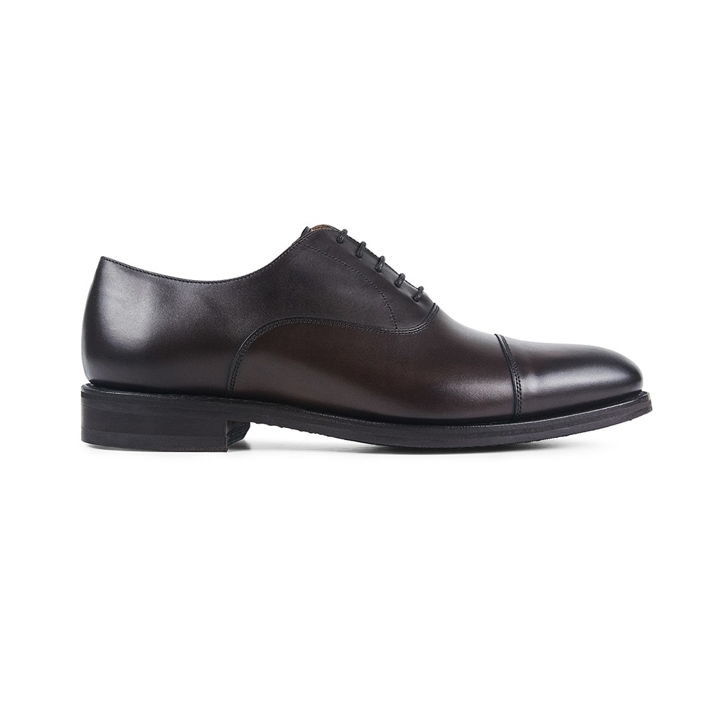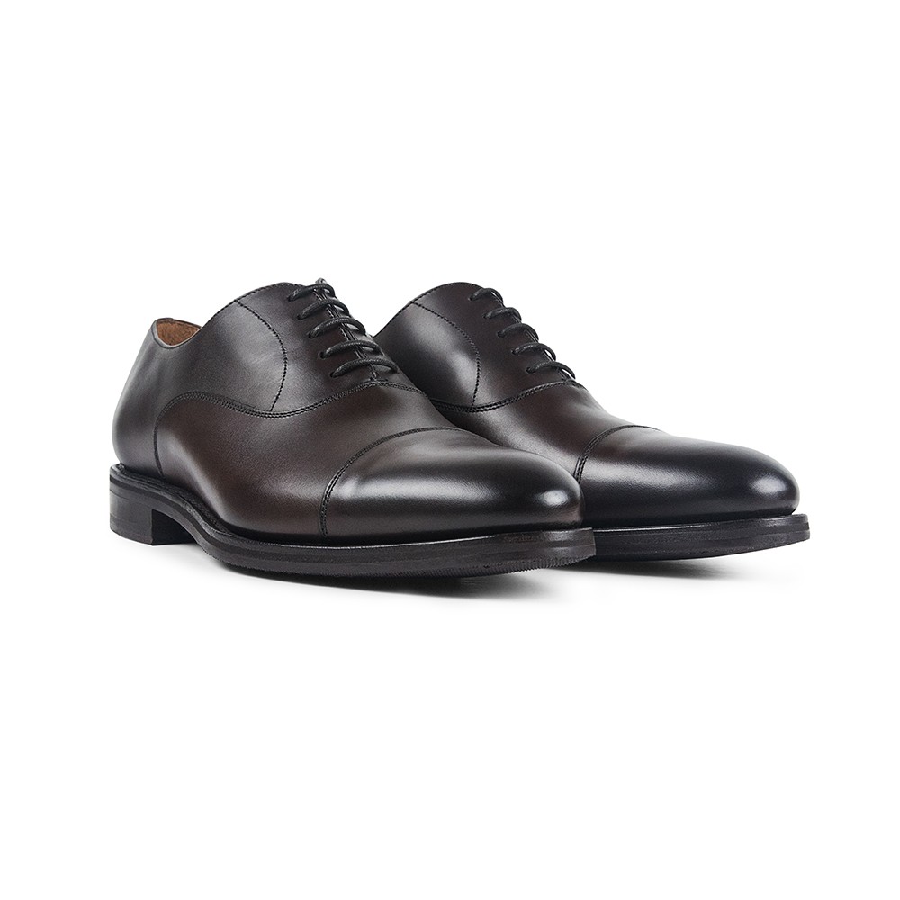 Scarpa tipo inglese con punta dritta (Oxford) realizzata in pelle bovina con suola in gomma morbida e leggera e costruzione Goodyear Welt.