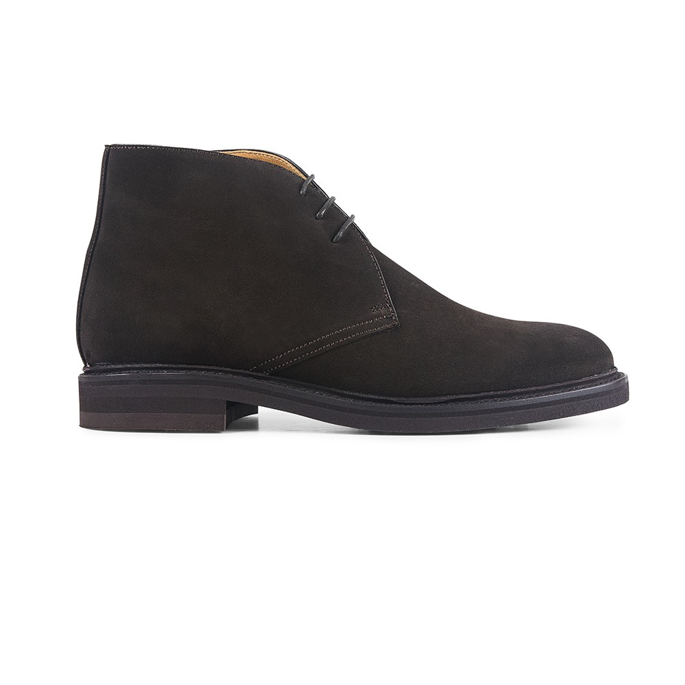 Stivale tipo Chukka o Desert Boot realizzato in pelle scamosciata con suola in gomma morbida e leggera Vibram, con intersuola e bordo in pelle alta per una maggiore resistenza alla pioggia e all'umidità, con costruzione Goodyear Welt. Uno stile intramontabile e versatile per diversi stili di abbigliamento.