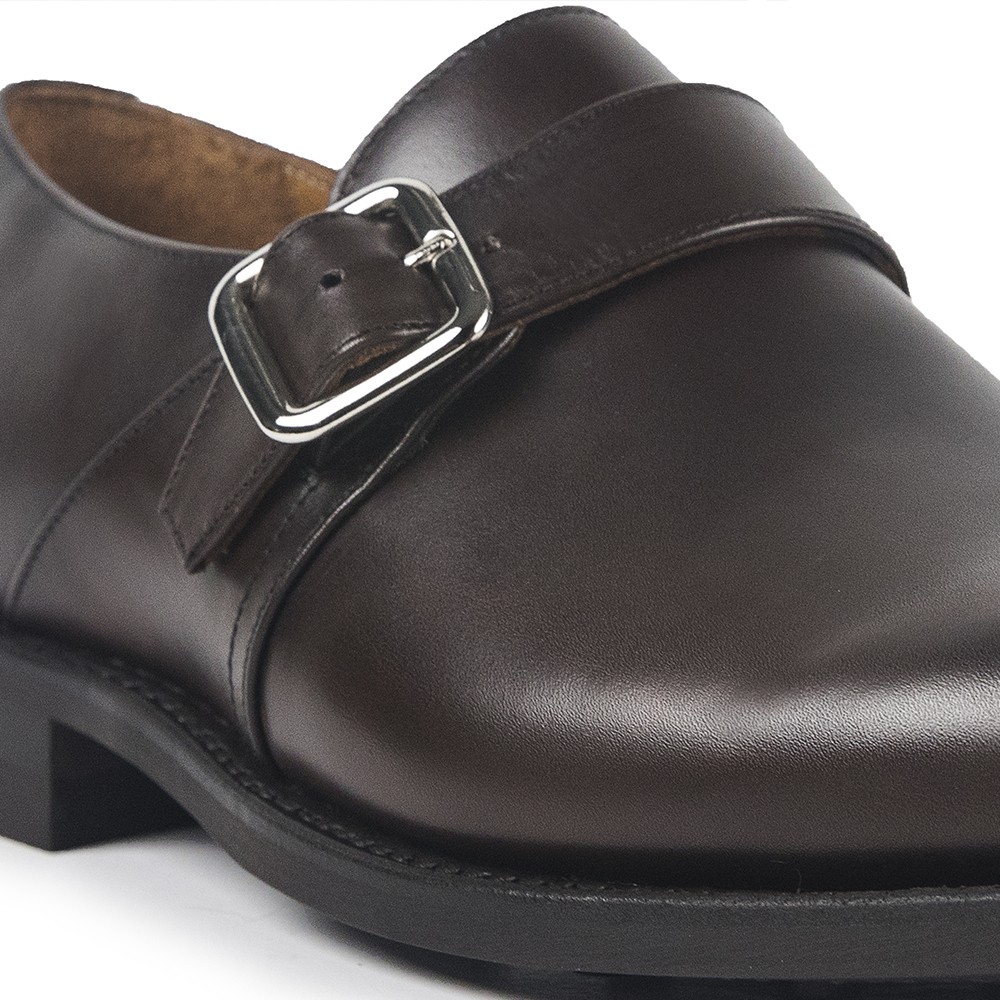 Scarpa con fibbia (Monk) realizzata in pelle bovina (da non confondere con la pelle vegetale) e suola in gomma Dainite, molto resistente, e fabbricazione Goodyear Welt. Una scarpa per tutte le occasioni, per un look elegante e per uno stile più informale.