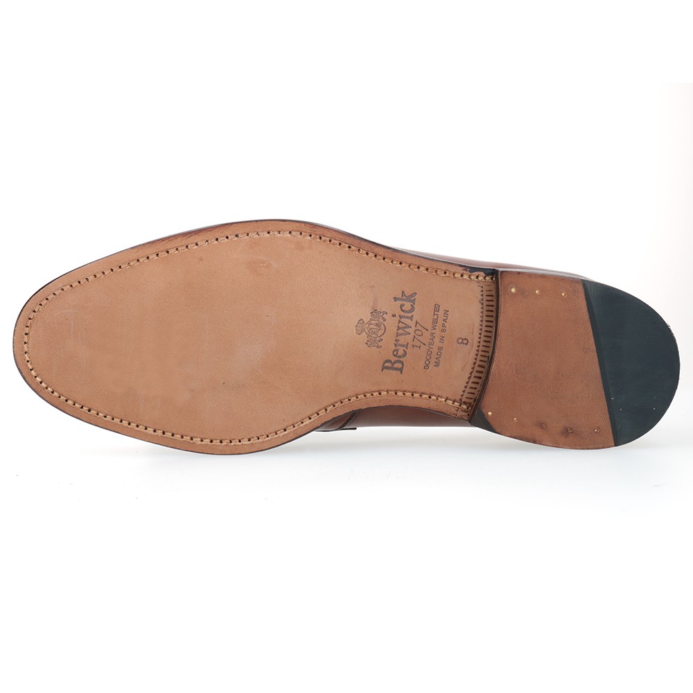 Mocassino in pelle di vacchetta e suola in cuoio.
